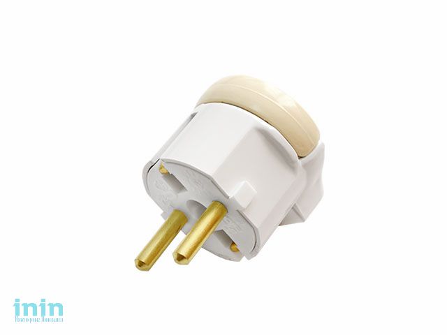Вилка угловая с откидывающимся ушком (с/з, 16А, 250В) белая, Bylectrica (Вилка штепсельная с откидывающимся кольцом с заземляющим контактом Гарантийны