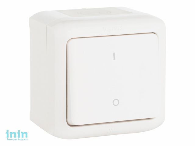 Выключатель 1 клав. двухполюсный, IP44, белый, Quteo, Legrand