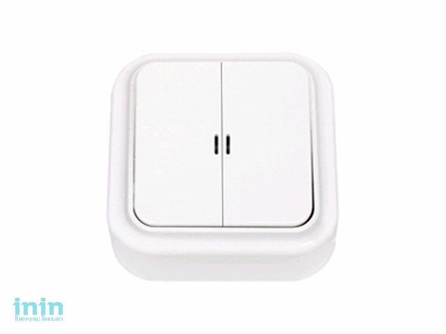 Выключатель 2 клав. (открытый, 10А) со световой индикацией, белый, Пралеска, BYLECTRICA (Выключатель двухклавишный со световой индикацией открытой уст