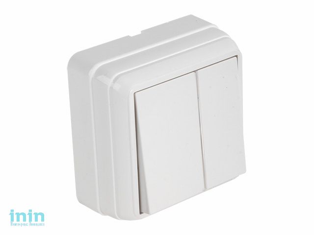 Выключатель 2-клав. (открытый) белый, BRON, MUTLUSAN (10 A, 250 V, IP 20)