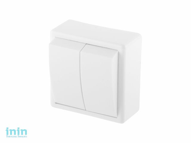 Выключатель установочный двухклавишный однополюсный для открытой установки предназначен для коммутации электрической цепи переменного тока с номинальным напряжением 250 В в нормальных климатических условиях внешней среды по ГОСТ 15150 и ГОСТ 15543.1.