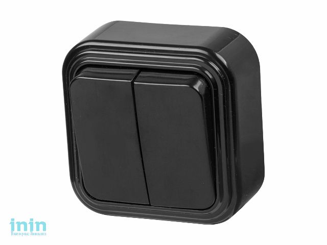 Выключатель 2 клав. (открытый, до 6А) черный, Стандарт, Юпитер (VA56-232-Ч) (ЮПИТЕР)