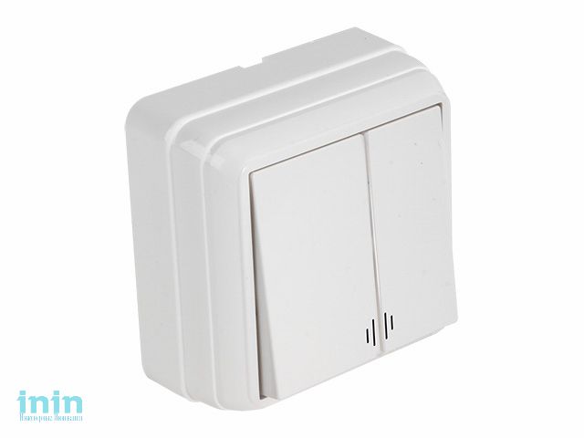 Выключатель 2-клав. (с подсветкой, открытый) белый, BRON, MUTLUSAN (10 A, 250 V, IP 20)