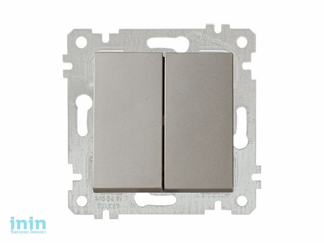 Выключатель 2-клав. (скрытый, без рамки, пруж. зажим) титан, RITA, MUTLUSAN (10 A, 250 V, IP 20)