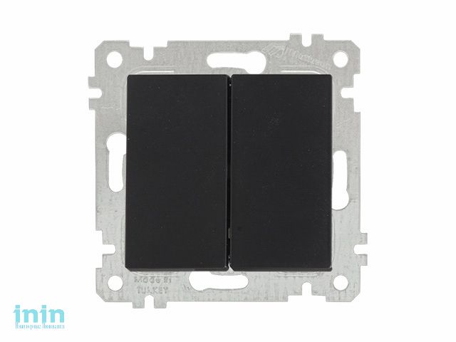 Выключатель 2-клав. (скрытый, без рамки, винт. зажим) черный, RITA, MUTLUSAN (10 A, 250 V, IP 20)