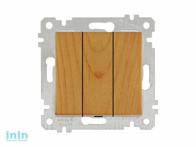 Выключатель 3-клав. (скрытый, без рамки, винт. зажим) дуб, RITA, MUTLUSAN (10 A, 250 V, IP 20)