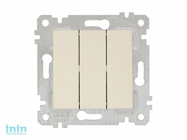 Выключатель 3-клав. (скрытый, без рамки, винт. зажим) кремовы, RITA, MUTLUSAN (10 A, 250 V, IP 20)
