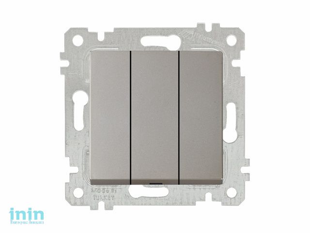 Выключатель 3-клав. (скрытый, без рамки, винт. зажим) титан, RITA, MUTLUSAN (10 A, 250 V, IP 20)
