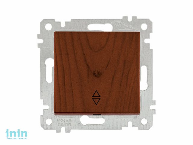 Выключатель проходной 1-клав. (скрытый, без рамки, пруж. зажим) орех, RITA, MUTLUSAN (10 A, 250 V, IP 20)
