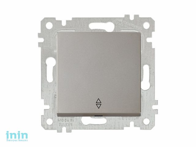 Выключатель проходной 1-клав. (скрытый, без рамки, винт. зажим) титан, RITA, MUTLUSAN (10 A, 250 V, IP 20)