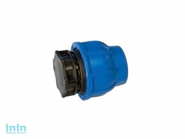 Заглушка компрессионная концевая для труб ПНД (полиэтилена низкого давления). Монтаж системы технического трубопровода либо трубопровода для питьевой воды довольно простой. Труба ПНД вставляется через втулку запрессовывающую диаметром 50 мм в компрессионную заглушку, фиксируется накидным кольцом, гайка плотно закручивается. Для того, чтобы система была герметична, для защиты системы от протекания, используется уплотнительное кольцо.