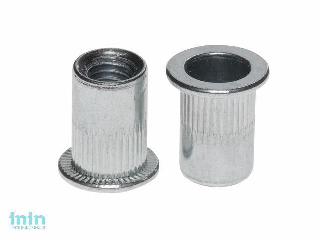 Стальная оцинкованная резьбовая заклепка с насечками и цилиндрическим  бортиком применяется для соединения материалов, где необходимо создать