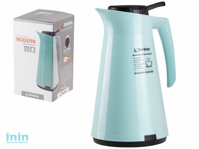 Кофейник (кофе пот) вакуумный, 1 л, Modern, бирюзовый, PERFECTO LINEA (Кувшин-термос в индивидуальной упаковке)